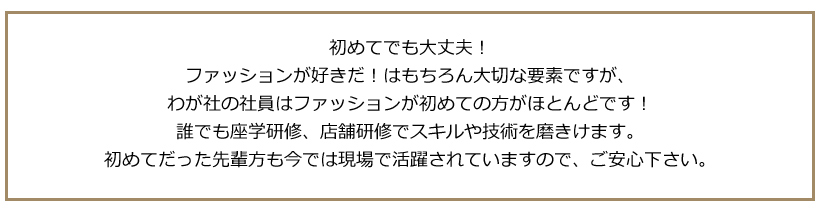 私たちは、どこにもない新しいアパレル商品を、仕入れ販売し、丁寧な接遇サービスを行うビジネスモデルで根強い固定ファンを創って参りました。