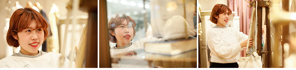 私はもともとファッションに携わる仕事に就きたいと思っていたのですが、この会社は上司や社員同士の距離が近く、 新人であっても意見をきいてくれそうな良い社内環境だと感じたからです。